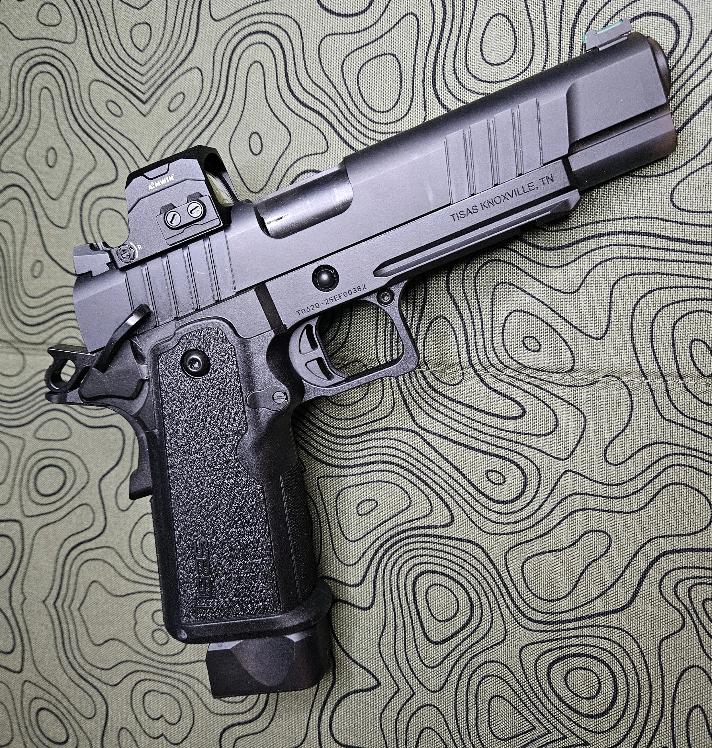 For the review, I mounted the Aimwin PE330 on a Tisas 1911 Double Stack. The window size of 23 x 16 mm worked well on this pistol. It is not the largest window, but it was very useful. I also noticed that the dot is very clear. Some of that is probably due to the glass used on the optic. I was pleasantly surprised at how clear the glass was. I couldn’t notice any color change or tint to it. Because the PE330 is a little wider than smaller RMSc red dots, it does hang over the sides of the slide. It is definitely noticeable, but does not hurt anything at all. That is a price you have to pay for a larger’ish size micro red dot on a thin 1911 slide. I don’t really care for the 1.5 MOA adjustment range. Yes it works, but I would like a finer adjustment, maybe something like a 1 MOA adjustment. With that said, I didn’t have any problems sighting in the pistol. I also haven’t had any problems with the sight itself, even with a ton of rounds being shot for the Tisas review itself.