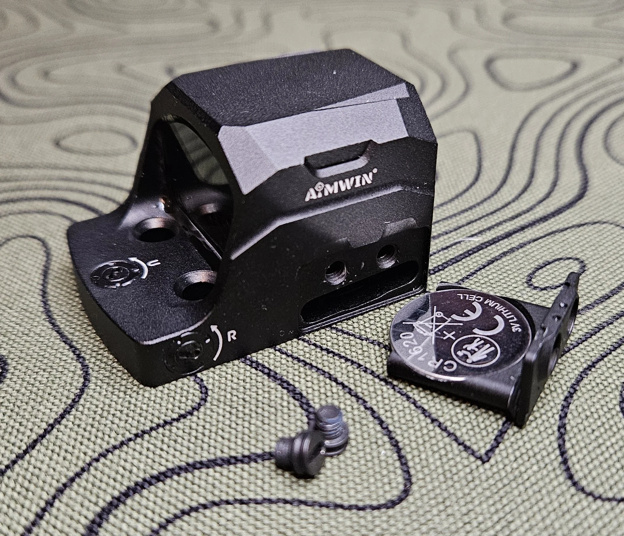 When it comes to powering the PE330, Aimwin uses a CR1620 battery. This is a slightly thinner battery than the CR1632, which is used in a lot of RMSc footprint red dots. Aimwin states a 20,000 hour battery life. So even though it isn’t as long as others, it is still plenty. Aimwin also designed the PE330 with a side load battery. So when you do change that battery, it is super easy to do and will not affect your zero. Something I haven’t seen with other red dots is that Aimwin includes extra battery tray screws. I will probably lose the extra screws before I actually need to replace one, but they are there just in case.