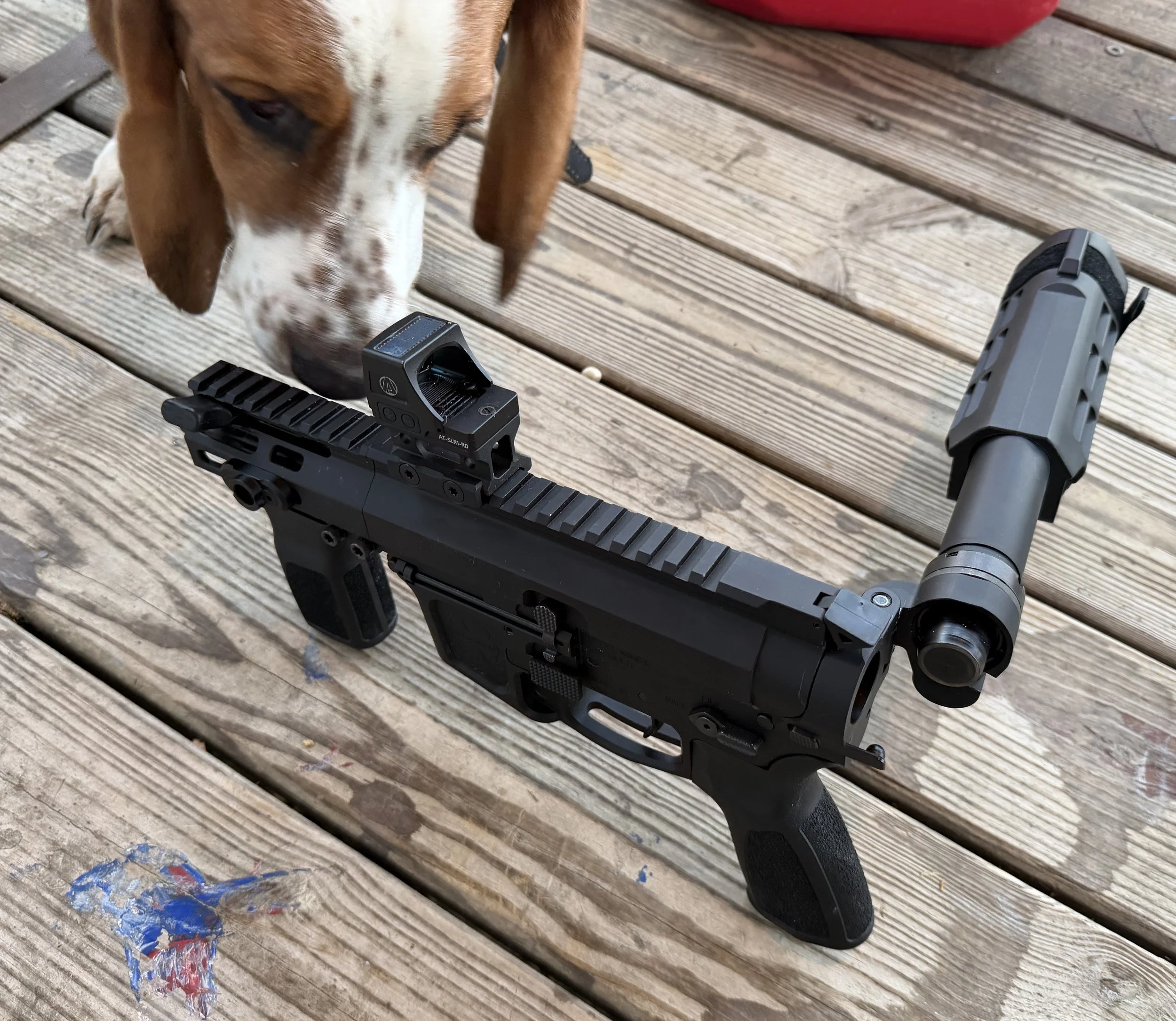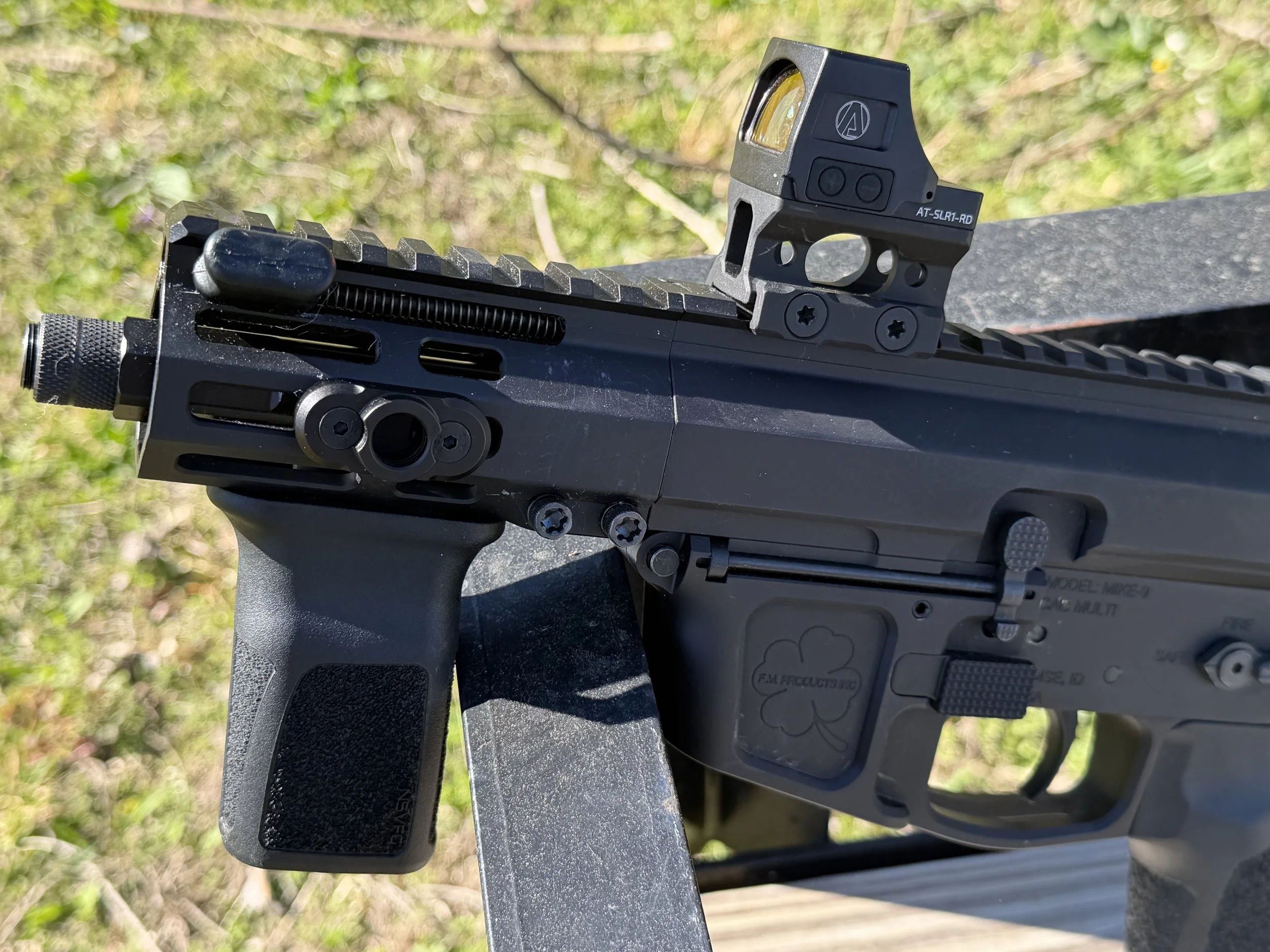 • The LRBHO: A lot of cheap 9mm ARs don't lock the bolt back on the last round. It’s annoying and slows you down. Foxtrot Mike’s Last Round Bolt Hold Open is built like a tank—it works every single time, even with cheap Magpul or ETS mags.