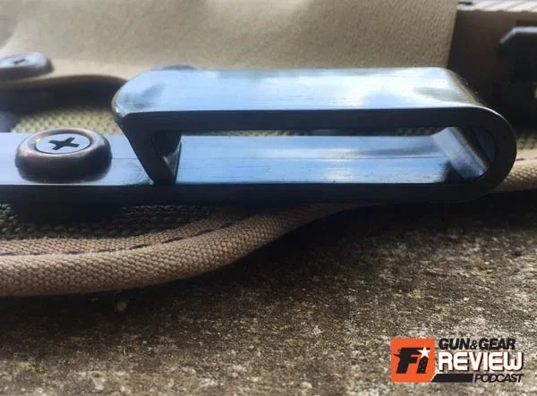 When I mentioned hybrid style on steroids, here is what I mean. The holster is constructed with a large backing plate and then the outer holster is attached to it. But all of this is wrapped as mentioned above. They also put in a tension adjustment screw so that you can adjust it to your preference. The backing on my supplied holster has 3 holes for each clip, it has a front and rear clip. These holes make it possible to adjust for ride height and cant. Also the supplied nylon clips have 2 mounting screw options for even more adjustment. Even with the clips mounted in the same holes on the backing plate, the cant of the firearm is pretty noticeable. I did have a problem with the screws, that the clips are mounted to, coming loose. I put thread locker on them, but got some on the nylon clips. DON'T get threadlocker on the clips, it might make them crack and break like in my case. I emailed Black Iron and told them what I did, within a few days they had sent me new clips. I was just going to use some others I had around here since it was my fault they broke. So a big +1 for customer service.